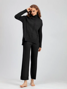 Scarlett | Chic High-Neck Knit Sweater & Loose Pants Set