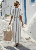 Elegant cross-neck linen dress
