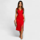 - Elegant Allure: The V-neck and tasteful slit create the perfect balance between sophistication and seduction.