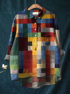 The Iris | Color Block Print Shirt features an eye-catching design of colorful blocks, perfect for those who love bold, artistic styles. The combination of reds, blues, yellows, and greens brings an energetic and playful touch to your wardrobe. The relaxed fit and soft fabric ensure comfort and style for any casual occasion.