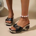 The Mia™ Buckle Wedge Sandals bring together bold buckles, woven textures, and chic studded details for a stylish yet comfortable finish. With their cushioned footbed and stable wedge heel, these sandals are perfect for everything from beach strolls to rooftop evenings.