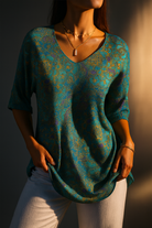 Women's Retro Art Print Casual Pullover Knit
