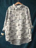 The Zoe | Dog Doodle Shirt is a delightful piece for any dog lover. Featuring an array of quirky dog illustrations in a hand-drawn, doodle style, this shirt adds fun and personality to your casual looks. The black-and-white design, combined with a light grey background, makes it easy to mix and match with your favourite jeans or skirts, while showcasing your love for man's best friend.